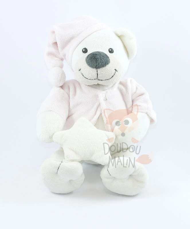 Ce doudou musical ours rose de la marque BOUT’CHOU sera la berceuse idéale pour endormir bébé. Le doudou musical ours l’accompagnera pour des nuits douces et sereines.
