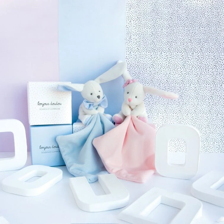 Caractéristiques :Lapin / Doudou plat / Fille / Rose / Avec une boîte